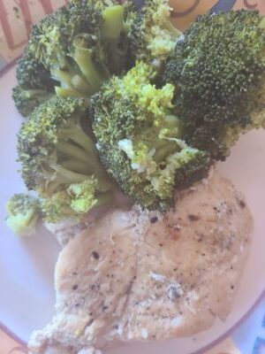 Remove the chicken and add chicken broth to pan, then add broccoli, ½ tsp salt and 1/4 tsp of pepper, cover and cook for approximately 5 minutes until broccoli is tender. Add chicken back in for a few minutes, then enjoy!